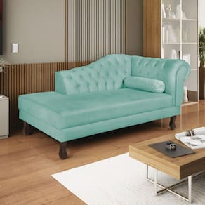 Diva Recamier Dora 130cm Lado Esquerdo Suede Azul Tiffany - Azul Doce
