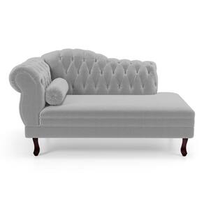 Divã Recamier Lavínia Clássico 120cm Capitonê com Pés de Madeira Bouclê Cinza Claro - Desk Design