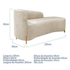 Divã Recamier Orgânico França 220cm Lado Dir Pés Madeira Linho Cor Bege - Branco