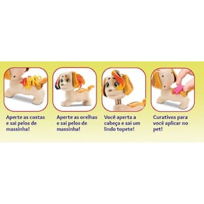 DescriçãoDeixe seu pet com muito mais estilo!! Voce pode criar pelinhos de massinha colorida para ele, nas orelhas, nas costas e modelar um topete maravilhosa!Vem com forminhas para fazer trancinhas e um kit veterinário para você cuidar dele quando ficar dodói!Especificações Técnicas:- Funcionalidade: Divertir, estimular e desenvolver habilidades- Idade recomendada: Acima de 3 ANOS+- Vem com 4 potinhos em 3 cores- Aprovado pelo INMETRO Sim