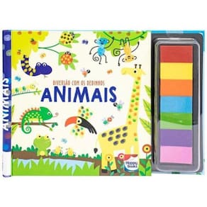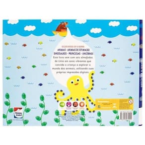 Este livro vem com sete almofadas de tinta em cores vibrantes que convida a criança a explorar o mundo dos animais, utilizando suas próprias impressões digitais.