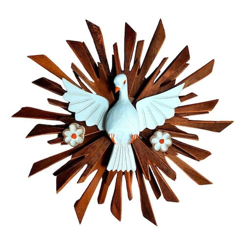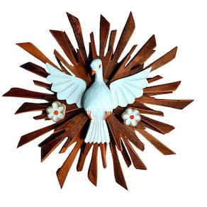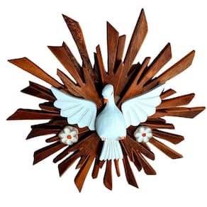 Apresentamos a Escultura de Parede Divino Espírito Santo Resplendor, uma peça única e especial que encanta com sua beleza e artesanato cuidadoso. Essa escultura é meticulosamente feita à mão em madeira maciça por dois irmãos artesãos, demonstrando seu talento e dedicação. O Resplendor possui um acabamento em verniz fosco, realçando sua elegância, enquanto o Divino é delicadamente pintado à mão, destacando os detalhes e a expressão serena. O design dessa escultura é complementado por duas pequenas flores, também feitas artesanalmente em madeira, que adornam o Resplendor, simbolizando a vida e a renovação.