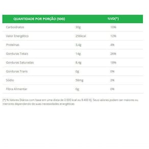 Flocos de arroz (farinha de arroz, cacau, maltodextrina, sal, óleo de palmiste e carbonato de cálcio), açúcar, manteiga de cacau, leite em pó integral, massa de cacau, espessante goma arábica, emulsificantes: lecitina de soja e ésteres de ácido ricinoléico interesterificado com poliglicerol, aromatizante artificial.