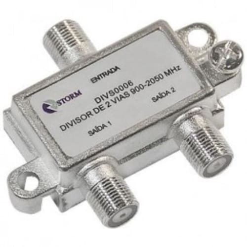 Divisor alta de satélite com 2 saídas; Frequência: 900Mhz Modelo: Div0002. Divisor de antena de baixa frequência, 1 entrada e 2 saídas; Frequência: 5~900 MHZ. Ean: 7898566200278