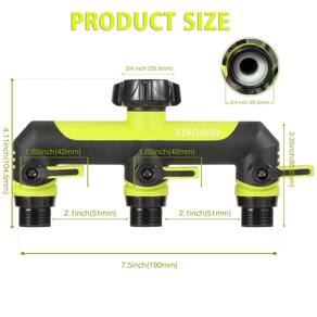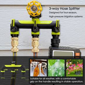 Este versátil desviador de mangueira é construído de material ABS robusto e bicos de entrada/saída de metal premium para durabilidade e desempenho. O espaçamento do bocal expandido de 5 cm cuidadosamente projetado e o generoso diâmetro interno de 1 cm permitem um fluxo de água incrível - A alça ergonomicamente projetada é confortável de segurar e fácil de operar, e a rosca segura evita vazamentos. Ideal para gerenciar eficientemente várias regas em seu jardim, este prático adaptador de mangueira de jardim pode ajudá-lo a maximizar sua fonte de água externa e transformar sua experiência de irrigação de jardim. - Estrutura robusta: Construção de liga de zinco resistente e revestimento emborrachado, com peças de entrada e saída de metal testadas para suportar 90 kg. de pressão e 54 kg. de força de tração. Projetado para todas as estações, este dispensador de mangueira de 3 vias mantém a flexibilidade e uma aderência confortável para uma operação estável mesmo em condições climáticas frias e congelantes. - Saídas duplas aprimoradas: as saídas são espaçadas de 5 cm para acomodar vários temporizadores de irrigação de jardim ou temporizadores grandes ao mesmo tempo, o diâmetro do furo aumentado de 1 cm garante fluxo de água ideal e pressione?As válvulas liga/desliga individuais em cada tomada têm um ótimo recurso de bloqueio para evitar vazamentos e permitir que você controle com precisão o fluxo de água. - AMPLA UTILIZAÇÃO: Este adaptador de mangueira externa é especialmente projetado para alta pressão de água, divide 3 conectores em 3 fontes de água de alto fluxo através de uma única torneira, perfeito para condições em que diferentes funções estão funcionando ao mesmo tempo. Adequado para coletores de torneira, para irrigação de jardim, lavagem de carro ou outro trabalho ao ar livre, é uma ferramenta essencial para manutenção de jardins e sistemas de irrigação. - Design requintado: cores vibrantes adicionam um pouco de diversão ao seu jardim, seu peso é de apenas 400 g, fácil de instalar e gerenciar de forma mais segura com parafusos de metal reforçados, e a alça estendida permite uma operação suave e fácil, mantendo a funcionalidade de nível profissional. - EXCELENTES ACESSÓRIOS: Também equipado com 3 anéis de borracha preta, 1 fita adesiva. Com este prático dispensador de mangueira de jardim, você pode lidar com várias necessidades de água ao ar livre ao mesmo tempo, economizando tempo e maximizando a eficiência da irrigação.