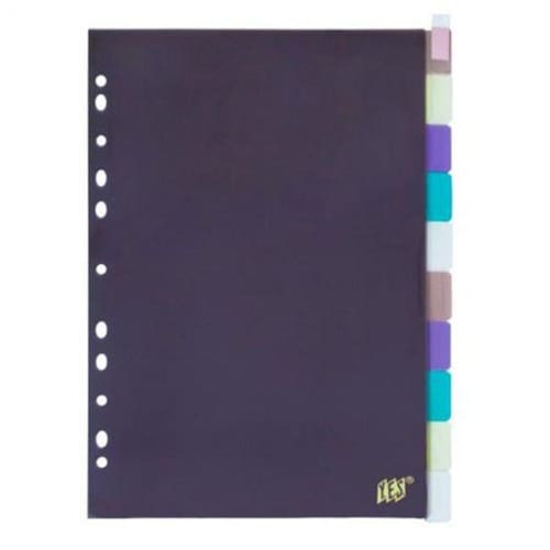 Divisória colorida ofício - 10 projeções com visor - 10INTB-SOR - YesDescrição- Medidas: 230 x 310 mm.- Divisórias com 10 divisões.- Possui visor para etiquetas de identificação.- Furação universal.- Ideal para organizar e identificar matérias escolares.- Documentos em fichários e pastas.- Feito de polipropileno de alta qualidade.- Totalmente reciclável e durável.