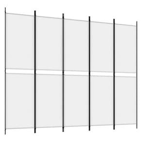 Esta divisória de quarto pode dividir uma sala em várias partes para fornecer um espaço privado e proteger sua privacidade. Material durável: o tecido apresenta uma aparência simples e limpa, é respirável e durável. Função versátil: você não pode apenas usar a tela divisória do quarto para separar o quarto ou bloquear parte da sala conforme necessário, mas também colocá-la na lateral da janela para bloquear a luz solar direta. Obviamente, você pode até usar a tela como parede de fundo.Design dobrável: esta divisória de sala é dobrável, por isso é fácil de armazenar sem ocupar muito espaço. Nota: Cada produto vem com um manual de montagem na caixa para facilitar a montagem. Cor: branco Material: tecido (100% poliéster), ferro Tamanho geral: 250 x 200 cm (L x A) Tamanho de cada painel: 46,5 x 178 cm (L x A) Distância média de 2 barras: 6 cm Dobrável