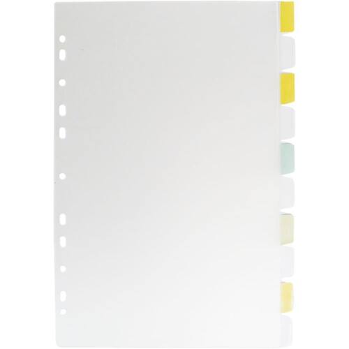 Divisórias de 10 matérias, furação universal (11 furos) e com visor para identificação.