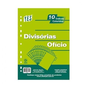 Divisória para Fichário Ofício Yes 10 Divisões C/Visor Color Divisória para Fichário Ofício Yes 10 Divisões C/Visor Colorido. Ideal para organizar e identificar matérias escolares, documentos em fichários e pastas.