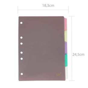Divisória para fichário yes colegial 5 divisões transparente conjunto de 5 divisórias com visor para identificação. Indicado para fichário tamanho colegial b5 yes. - marca: yes - modelo: 5tbctsor - referência: 5tbctsor colegial b5 - 5 unidades na cor transparente - para fichário tamanho colegial b5 yes - leve, resistente e impermeável - não absorve umidade e mofo - plástico em polipropileno translucido - não adere ao impresso - 100% reciclável. - 6 furos - furo de aproximadamente 8 m - dimensões: 183x245mm largura x altura x profundidade