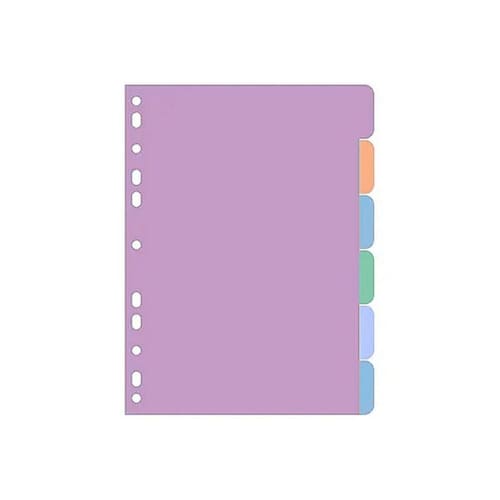São 6 divisórias diferentes, no formato universal, que comportam folhas de diferentes tamanhos e são fáceis ideais para a organização e separação de matérias nos cadernos argolados. As Divisórias possuem impressão nas cores rosa, lilás, verde, azul, laranja e amarelo.