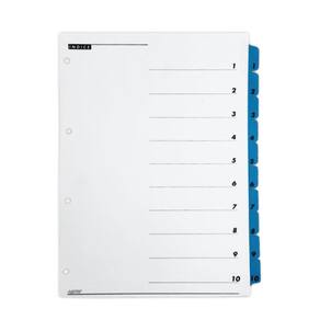 - Marca: Artik - Divisórias com 10 divisões - Possui visor para etiquetas de identificação - Furação universal - Totalmente reciclável e durável - Formato: A4 - Medidas: 297 x 210 mm Comprimento x Largura - Material: Papel Marca: Não Informado