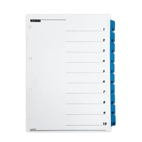 Divisórias para Fichário A4 Artik 10 Divisões C/Visor Números Nome: Números Azul Divisória para Fichário Ofício 10 Divisões C/Visor. Ideal para organizar e identificar matérias escolares, documentos em fichários e pastas.