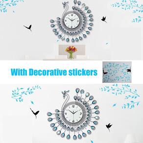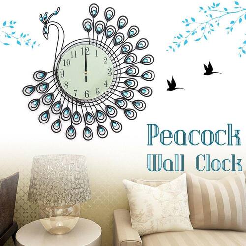 Cor: Como mostrado na imagem Modelo: Pavão Relógio Display Tipo: Número + Ponteiros Tamanho: 54x54cm / 21.26x21.26in Fácil de instalar e usar Projetado com brocas flash, parece requintado novo e de alta qualidade Proteção segura e ambiental O processo de pintura