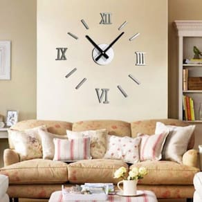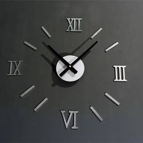 DIY 3D Relógio de parede espelho algarismos romanos prata