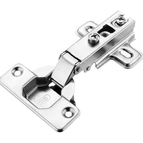 A Dobradiça 35 mm possui regulagem vertical e horizontal para melhor alinhamento das portas e é fixada no calço por parafuso no sistema slide on (deslizante).