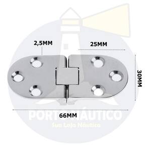 informações adicionais: Material aço inox 316 Dimensões: 66 x 30mm Diâmetro: 2,5mm Aplicação: portas, armários, janelas.