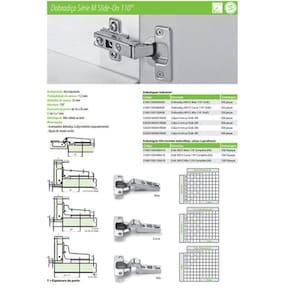 A dobradiça tn slide-on 105º tem a montagem simples, realizada através do deslizamento da dobradiça sobre o calço. Que possui regulagem lateral vertical e horizontal para melhor alinhamento das portas e é fixada no calço por duas linhas de fixação no sistema slide-on deslizante