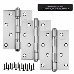 Dobradiça para Porta Pado 4 com Rolamento 4030 Embutir 60kg Inox Escovado com 3 Peças - Torne suas Portas Mais Eficientes com a Dobradiça 4030 Pado A Dobradiça para Porta Inox com Rolamento 4030 Pado é uma solução de alta qualidade para suas portas. Com design robusto e confiável, oferece um funcionamento suave e silencioso. Sua durabilidade e eficiência fazem dela uma escolha excelente para portas internas e externas, conforto praticidade e segurança em sua utilização diária. Kit Dobradiça 4030 Pado: Quantos Quilos a Dobradiça Pado 4030 Suporta A Dobradiça 4030 Pado suporta até 60kg, sendo perfeita para portas que precisam suportar um peso maior. Com essa capacidade, ela oferece segurança e confiabilidade, sendo uma ótima escolha para diferentes tipos de portas e usos variados em casas e escritórios. Quais as Dimensões da Dobradiça 4030 A Dobradiça Inox com Rolamento 4030 Pado tem medidas de 4x3, o que equivale a aproximadamente 101,6mm x 76,2mm. Essas dimensões proporcionam uma adaptação versátil para diferentes portas, oferecendo uma solução robusta e funcional para sua instalação. Características Gerais do Produto: Código: Sim Tamanho: 4 Material: Inox Possui Rolamento: Sim : 60 Meses Junto ao Fabricante Espessura da Porta: 2,5mm Acompanha o produto: 3 Dobradiças Parafusos Para Fixação : Fabricante