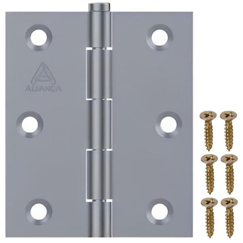 Eleve a funcionalidade e a aparência de suas portas, janelas, armários e cantos retos com as dobradiças Aliança, sinônimo de qualidade e durabilidade. Ideal para projetos residenciais e comerciais, nossas dobradiças são projetadas para garantir um movimento suave e silencioso, proporcionando segurança e elegância em cada detalhe. A Dobradiça Polida Aliança com 6 furos é ideal para fixação e possui acabamento em aço zincado, oferecendo resistência e qualidade para fixar.