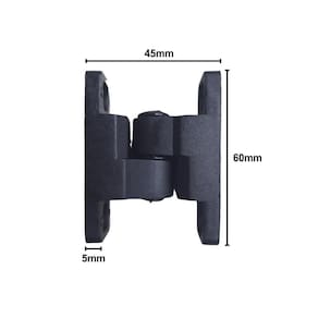 Fabricada em plástico resistente, essa dobradiça possui as seguintes características técnicas: altura de 60mm, largura aberta de 45mm, distância entre furos de 45mm e diâmetro do furo de 5mm. Além disso, ela não possui sistema com mola.