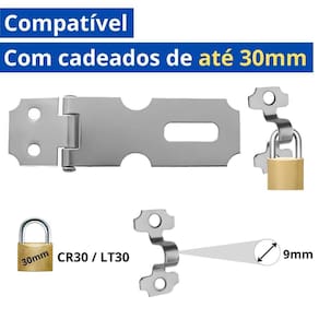 Mantenha seus espaços seguros com o Trinco para Porta com Cadeado. Ideal para quem busca reforçar a proteção de portas, portões e janelas, este trinco é fabricado com materiais de alta qualidade, oferecendo durabilidade e resistência contra arrombamentos. DIFERENCIAIS - Design moderno e cromado que agrega sofisticação aos ambientes. - Material de alta qualidade que garante resistência e durabilidade. - Fácil instalação, excelente acabamento e baixo custo. - Versatilidade de aplicação em diferentes tipos de portas e móveis. ESPECIFICAÇÕES TÉCNICAS Material: Aço carbono Cor: Cromado : 1 ano Aplicações: Portas, armários, janelas e cantos retos. ITENS INCLUSOS 06 Trincas Para Cadeado 24 Parafusos