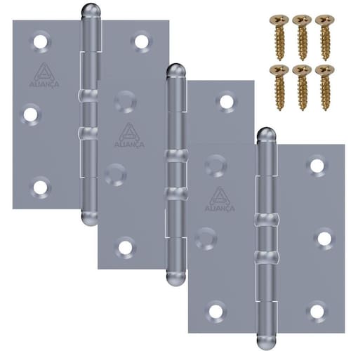 Eleve a funcionalidade e a aparência de suas portas, janelas, armários e cantos retos com as dobradiças Aliança, sinônimo de qualidade e durabilidade. Ideal para projetos residenciais e comerciais, nossas dobradiças são projetadas para garantir um movimento suave e silencioso, proporcionando segurança e elegância em cada detalhe. A Dobradiça Polida Aliança com 6 furos é ideal para fixação e possui acabamento em aço zincado, oferecendo resistência e qualidade para fixar.