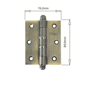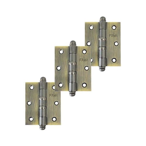 As dobradiças fama são fabricadas em latão 268 1/2 com material relaminado a frio, com alta resistência e dureza ideal para as Dobradiças , dentro do rigoroso padrão da norma ABNT, que se torna um produto com qualidade. Indicada para fixação em portas mais pesadas, por exemplo: portas de madeira maciça. Possui pino com 2 anéis, proporcionando maior durabilidade.