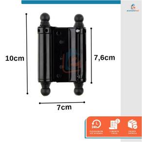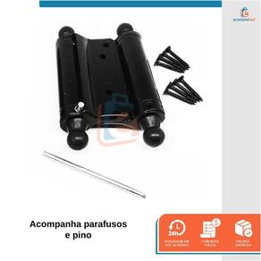 A dobradiça vai e vem é ideal para portas de alta circulação, como cozinhas, restaurantes, bares, hospitais e janelas bang bang. Produzido em material excelente, alongando sua durabilidade e de simples instalação. INSTRUÇÕES DE INSTALAÇÃO- 1 Usar o parafuso de madeira para fixar a dobradiça;Para instalar as dobradiças não é importante saber se a porta abre para o lado direito ou esquerdo. Aviso: É melhor o furo de ajuste estar na parte superior com a abertura da porta para o lado esquerdo ou o furo de ajuste estar na parte inferior com a abertura da porta para o lado direito.- 2 Insira o pino no buraco de ajuste e gire-o na direção que se afaste da prancha da porta. Então insira o pino dentro do buraco e aperte a mola gradualmente até que a porta feche automaticamente;- 3 Se a dobradiça for removida deve ser ajustada novamente na próxima instalação. CARACTERÍSTICAS TÉCNICAS:Material: Aço inoxMedidas: 7,6cm 3 4 furos cada lado 2 pinos para regulagem de pressãoComprimento com pino: 100mmCapacidade: 50kgAcompanha parafuso e pinoMarca: StarferRef.: 4032004
