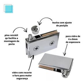 Apresentamos o par dobradiça grande, uma solução especial para portas de vidro amplas em móveis, vitrines, racks, cristaleiras e nichos. Essa dobradiça é projetada para portas com mais de 1,5m de altura e até 60cm de largura, com vidro temperado de 6mm até 8mm de espessura. É importante destacar que essa dobradiça não é , possuindo um pino de baixo embutido para maior estabilidade e segurança. Para a instalação, é necessário recortar e furar o vidro sob medida. Recomendamos ter as dobradiças em mãos ao solicitar a confecção dos vidros. ------------------------observações tecnicas do produto---------------------------- Portas com até 600mm de largura e até 2200mm de altura. A porta de vidro precisa ter recorte, o que aumenta muito a segurança da montagem. Para vidros de 6mm a 8mm. Não enferruja. Resistente e durável. Excelente acabamento cromado polido, que reduz a necessidade de limpeza. Obs: verifique nossos outros produtos na opção ver mais dados deste vendedor e em seguida mais anúncios do vendedor para encontrar mais opções de ferramentas e acessórios que possam atender às suas necessidades. Marca: Não Informado