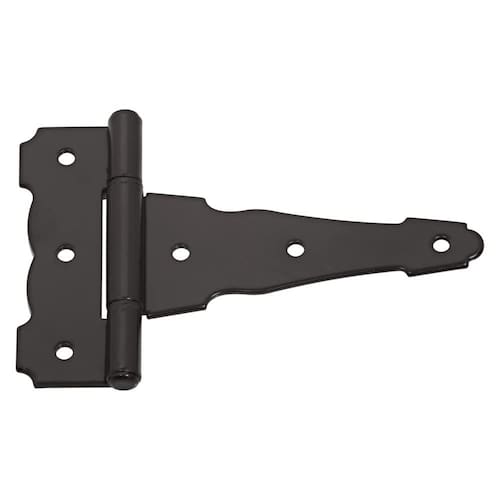 - As dobradiças em T ornamentais/reversíveis são feitas com furos para resistência pesada para evitar que a madeira descasque em sua aplicação.