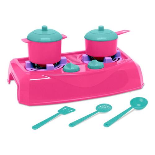 Com cores alegres, conta com 6 peças, sendo 1 fogão, 2 panelas com tampa, 1 espátula, 1 escumadeira e 1 concha. Agora é só preparar o jantar e chamar as amigas para se deliciarem com incríveis receitas. Um conjunto ideal para trazer diversão é alegria para as meninas.