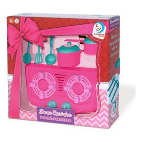 O conjunto Fogãozinho da linha Doce Cozinha, da Cardoso, é fabricado em plástico de qualidade, garantindo durabilidade e resistência durante o uso.