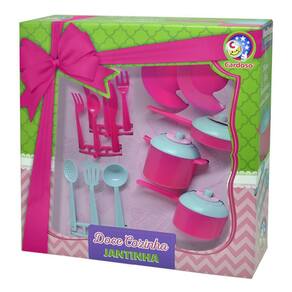 O conjunto jantinha da linha Doce Cozinha, da Cardoso, é fabricado em plástico de qualidade, garantindo durabilidade e resistência durante o uso. Com cores alegres, conta com 14 peças, sendo 2 pratos, 2 garfos, 2 facas, 2 colheres, 1 escumadeira, 1 espátula, 1 concha e 3 panelas com tampa. Agora é só preparar o jantar e chamar as amigas para se deliciarem com incríveis receitas. Um conjunto ideal para trazer diversão é alegria para as meninas.