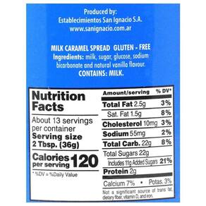 Doce De Leite Argentino San Ignacio Premium Vidro 450G O doce de leite san ignacio é o legítimo doce de leite argentino, com receita especial, feito com menos açúcar e mais paladar de leite. Pode ser consumido sozinho, combinado com outros alimentos, ou ainda ser um excelente recheio para crepes, biscoitos e bolos. Informações adicionais:Origem: argentinaPeso líquido: 450gFabricante: establecimientos san ignacio s.AAlérgicos: contém leite; contém lactose; não contém gluten