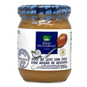 Doce de Leite com Coco Zero SÃO LOURENÇO 210g O Doce de Leite Coco Diet São Lourenço é uma deliciosa sobremesa produzida com ingredientes selecionados e de qualidade premium. Com sua receita especial, o doce é preparado com leite e coco, sem adição de açúcar, o que o torna uma opção ideal para quem busca uma alimentação saudável e equilibrada.