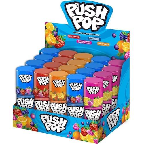 Doce push pop tradicional. Sabores: laranja, morango, frutos do bosque e framboesa/limonada. Embalagem: display com 20. Este é um produto excelente. Seu uso é de extrema qualidade e precisão. Produzido com materiais de. Atenderá muito bem suas necessidades.