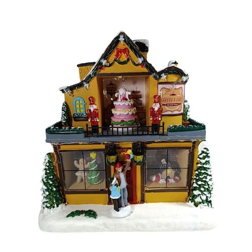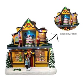Designer ricos em detalhes representa uma loja de doces temática, decorada com elementos vibrantes e detalhes inspirados na magia natalina. Inclui fachada detalhada, e decoração com doces típicos.Uma loja de doces com iluminação colorida e possui um bolo giratório no segundo andar.Além disso, possui toques de musicas natalinas.