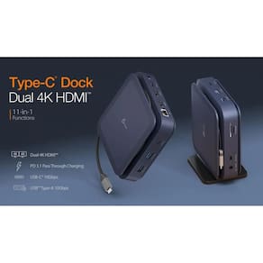 Este dock compacto multiporta é ideal para aplicação de escritório, apresentando tudo, desde as duas saídas hdmitm essenciais, portas usbtm, gigabit ethernet, leitor de cartão sdtm/microsdtm, audio jack e uma especificação power delivery 3.1 atualizada. Ele vem com um suporte para economizar espaço na vertical e oferece a capacidade de conectar seu macbook ou outros laptops compatíveis com usb-c a um monitor 4k ou tv.