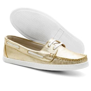 Dockside Sider Feminino Calce Facil Couro Casual Para Passear Trabalhar Palmilha Macia - 35 - Amarelo Ouro