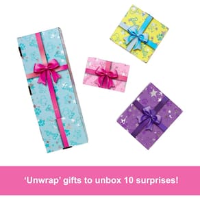 - Continue abrindo os misteriosos "presentes" para descobrir o convidado de honra – um adorável mini filhote de estimação que também tem um tutu do tamanho de um animal de estimação!