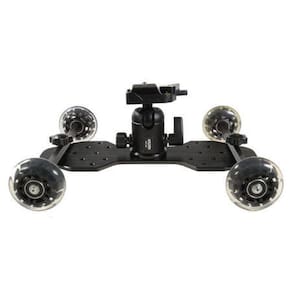 O Dolly Skate SK-1A para Câmeras DSLR e Filmadoras, Cabeça de Tripé vendida separadamente , e um simples, acessível dolly para a captura de fotos dinâmicas com pequenas câmeras de vídeo e qualquer outro tipo de câmera de vídeo habilitada, como uma DSLR. Perfeito para uso de mesa ou fotos de baixo ângulo, o Dolly acrescenta um o elemento crucial para a tomada de fotos de forma estática convincente: movimento suave.Este Dolly Slider possui dimensões de 30cm x 26cm x 4cm e chassi de alumínio resistente, Este Mini Dolly Skate SK-1A para Câmeras DSLR, Mirrorless e Filmadoras possui um sistema de orientação que, a partir das informações já contidas na orientação do Dolly Skate você possa definir ângulos e eixos que o carrinho irá percorrer. O Dolly Skate Grande SK-1A possui encaixe para Cabeças Head com rosca padrão de 3/8 e 1/4, garantindo mais opções e descobertas com a sua Câmera de Vídeo.Principais Características: Estilo Dolly Skate 4x Rodas rolamentos de de alta qualidade construção em alumínio, Suporta equipamentos de até 12g rosca Central de 3/8 e 1/4 Adequado para Câmeras, Filmadoras, SmartPhones, Iluminadores Led e muito mais cabeça para Tripé não acompanha vendida separadamente Marca: Não Informado