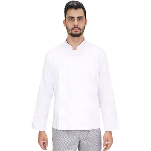 O Dólmã Chef de Cozinha masculina com Zíper é produzido com tecido Clássico, Brim Tapé da Santista, tecido 100% Algodão.