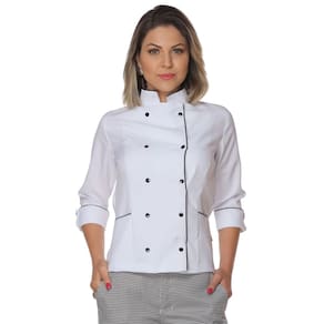 A Dolmã Chef de Cozinha feminina ACINTURADA manga 3/4 é produzido em tecido Oxford Premium.