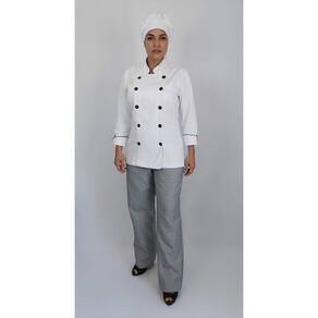 Especificações: Dolma Feminina Chef de Cozinha Manga ¾ Tecido de Brim - Branca