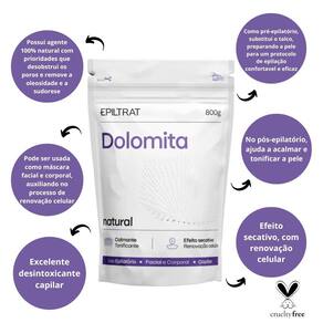 A Dolamita Epiltrat possui agente 100% natural com prioridades que desobstruiu os poros e remove a oleosidade e a sudorese. Pode ser usada como máscara facial e corporal, auxiliando no processo de renovação celular deixando a pele com o tom mais uniforme. No couro cabeludo, excelente desintoxicante capilar. Como pré-epilatório, substitui o talco, preparando a pele para um protocolo de epilação confortavel e eficaz. No pós-epilatório, ajuda a acalmar e tonificar a pele.