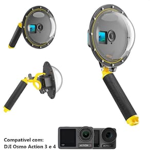 Dome telesin caixa estanque + + gatilho dji action 3 e 4 Dome telesin caixa estanque + + gatilho dji action 3 e 4 O dome de 6 da telesin permite capturar uma visão de 180 acima ou abaixo do nível da água com sua câmera dji osmo action 3 e 4. O dome é todo fabricando de plástico leve e sua cúpula possui 93% de transmissão de luz e é classificada à prova d&39;água até 30 metros. Além disso, a cúpula possui inserções antiembaçantes para evitar que a lente da câmera fique embaçada. O incluso é feito de material antiderrapante e possui uma rosca de 1/4-20 na extremidade para adicionar uma extensão ou montá-lo em um tripé. O punho também é oco, por isso pode ser como flutuante e também permite usá-lo como armazenamento. Uma alça inclusa fornece segurança adicional para a montagem. Principais vantagens: - cúpula de plástico de 6, fov de 180 - para câmera de ação dji osmo action 3 e 4 - plástico de qualidade transmite 93% de luz - acompanha flutuante e alça de segurança - o é oco para armazenar pequenos objetos - capture imagens na/acima/abaixo da linha dágua - classificação de profundidade à prova d&39;água de até 30 metros Dados técnicos: Marca: telesin Modelo: oa-dmp-001 Material: acrílico + plástico Diâmetro do dome: 6 Prova d&39;água: até 30 metros Compatibilidade: Compatível com câmera dji action 3 e 4 Itens inclusos: 1x dome 6 polegadas 1x flutuante 2x parafusos 1x chave de aperto 1x tecido para limpeza 1x gatilho para disparo de foto 1x alça de mão ajustável 5x pastilhas anti-fog 1x suporte curvo Câmera não inclusa Imagens meramente ilustrativas de 90 dias após o recebimento do produto Esta é válida para todo o território nacional, e ela cobre defeitos de fabricação. Para maiores informações consulte o site do fabricante ou contate-nos pelos nossos canais de atendimento. Por que comprar seu equipamento com a proaventura