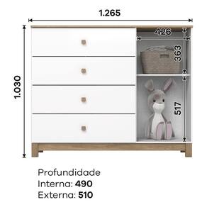 Tamanho da Cômoda (L x A x P): 126,5 x 103 x 51 cm