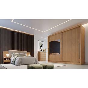 Dormitório Casal Completo 3 Peças com Espelho 2 Portas 14 Gavetas - Catânia-Cumaru/Ripado - Móveis Novo Horizonte