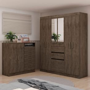 O Dormitório Casal Completo Roupeiro com Espelho na cor Demolição é a escolha perfeita para quem busca elegância e funcionalidade em um único móvel. Com um design moderno e sofisticado, este conjunto irá transformar o seu quarto em um ambiente aconchegante e charmoso.